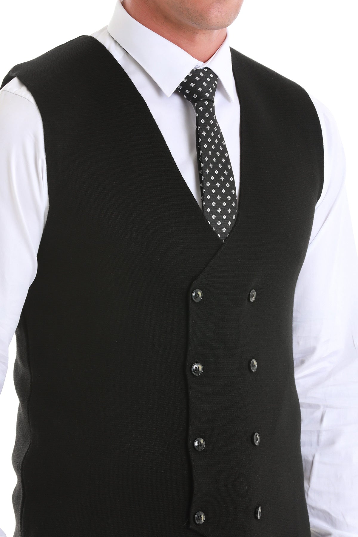 Regular Fit Double Breasted Black Knit Button Down Vest