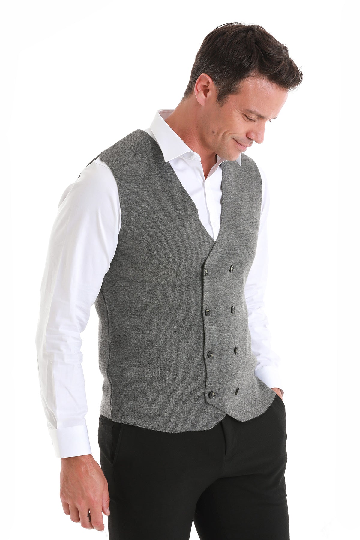 Regular Fit Double Breasted Dark Gray Knit Button Down Vest