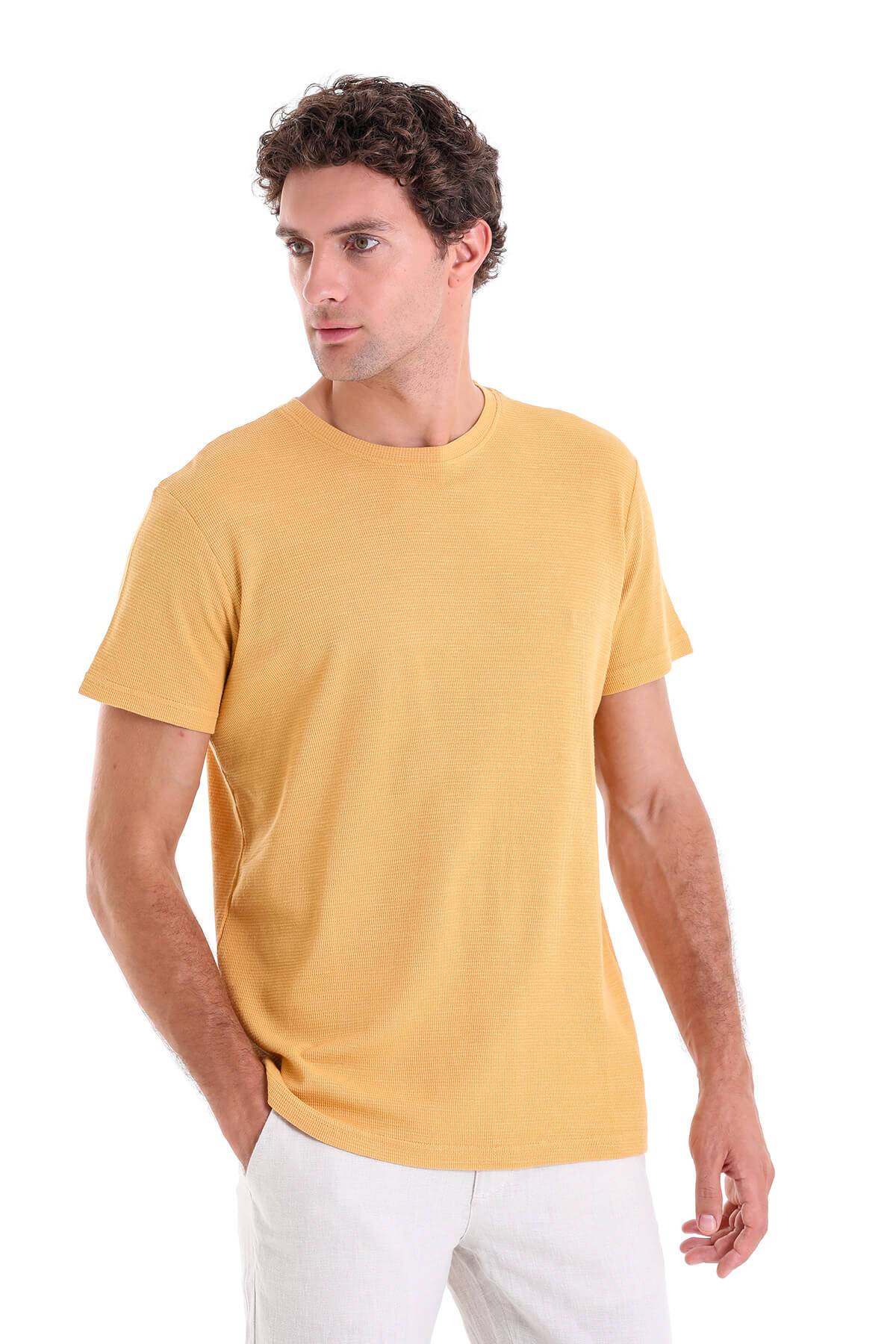 Regular Fit Mustard Cotton Crew Neck T-Shirt