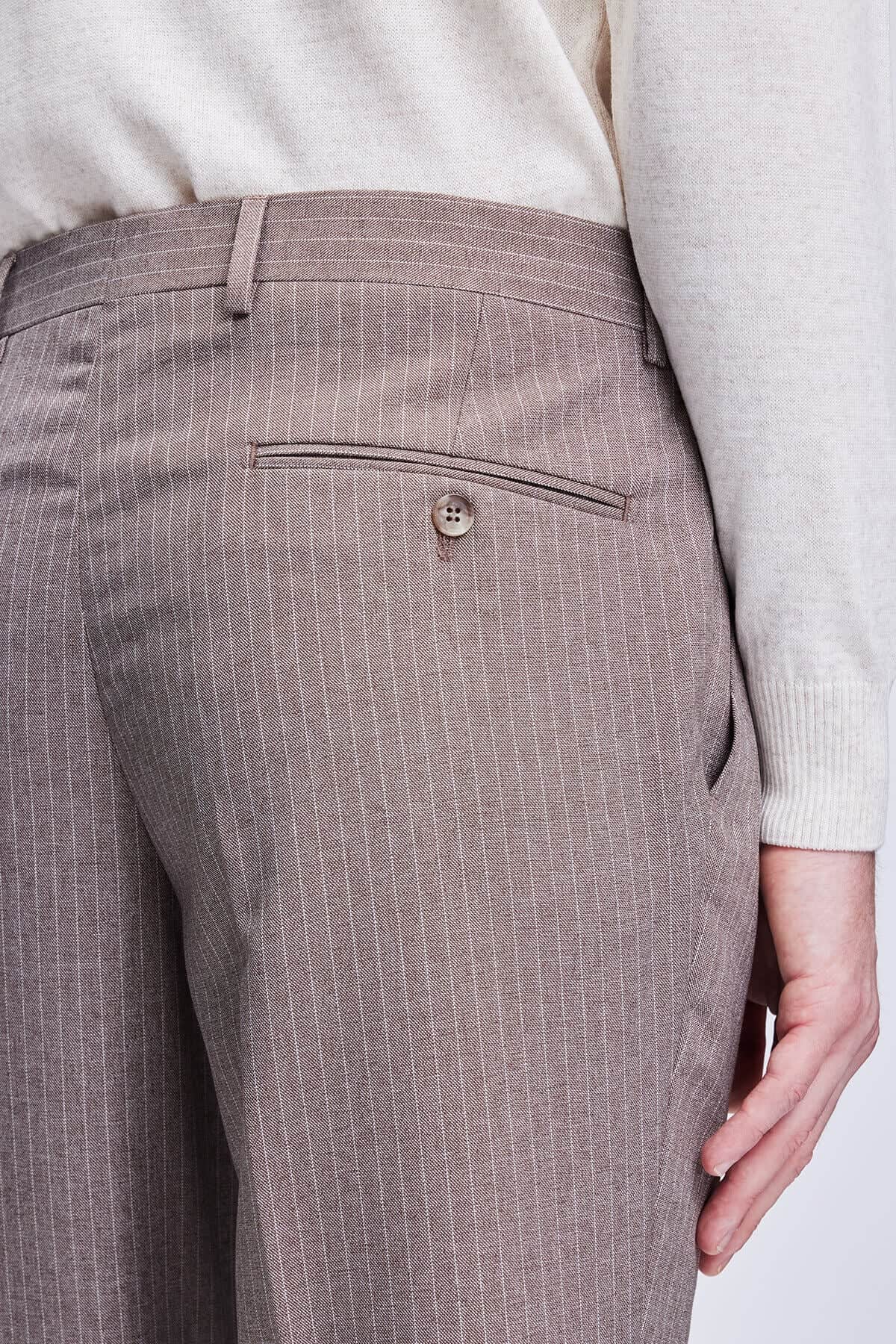 Slim Fit Brown Peak Lapel Striped Double-Breasted Classic Suit